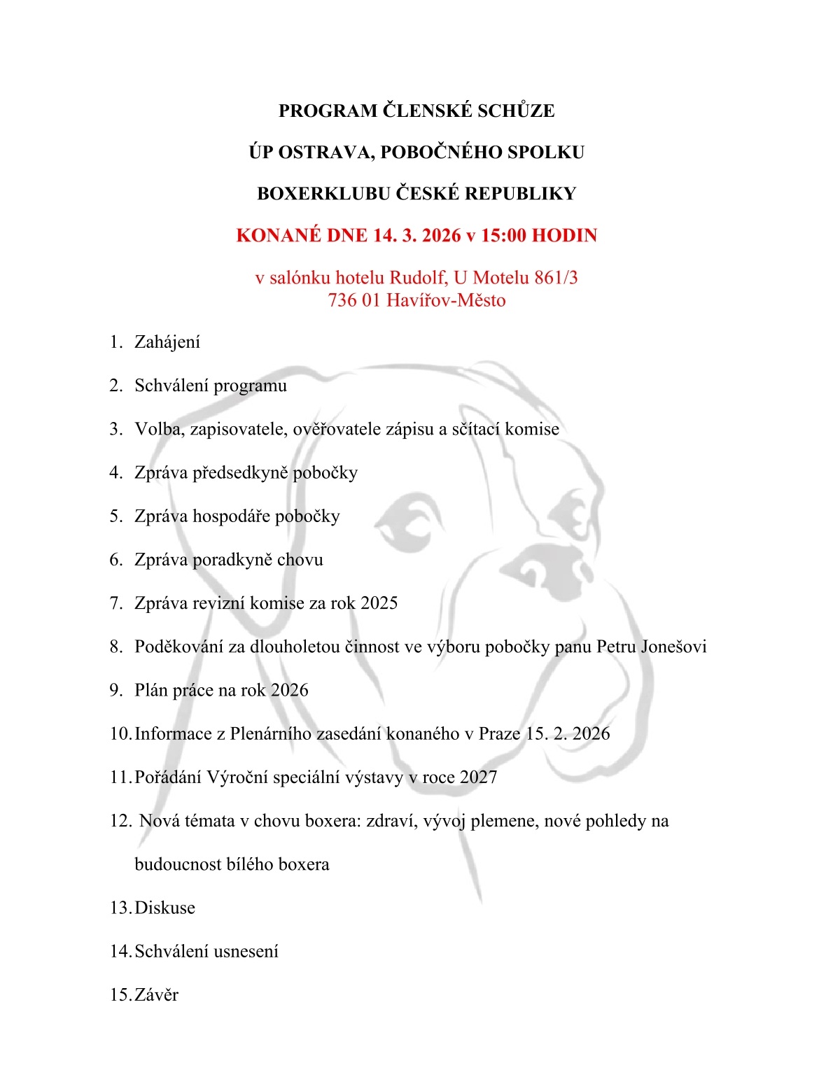 Prosím potvrďte svoji účast na email: boxerostrava@seznam.cz - uveďte počet osob a psů